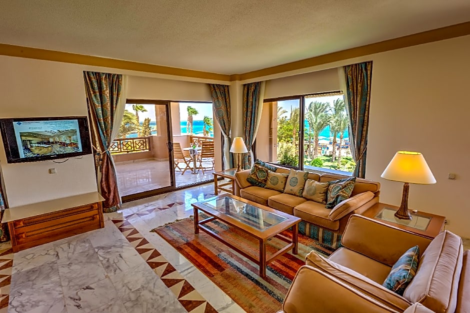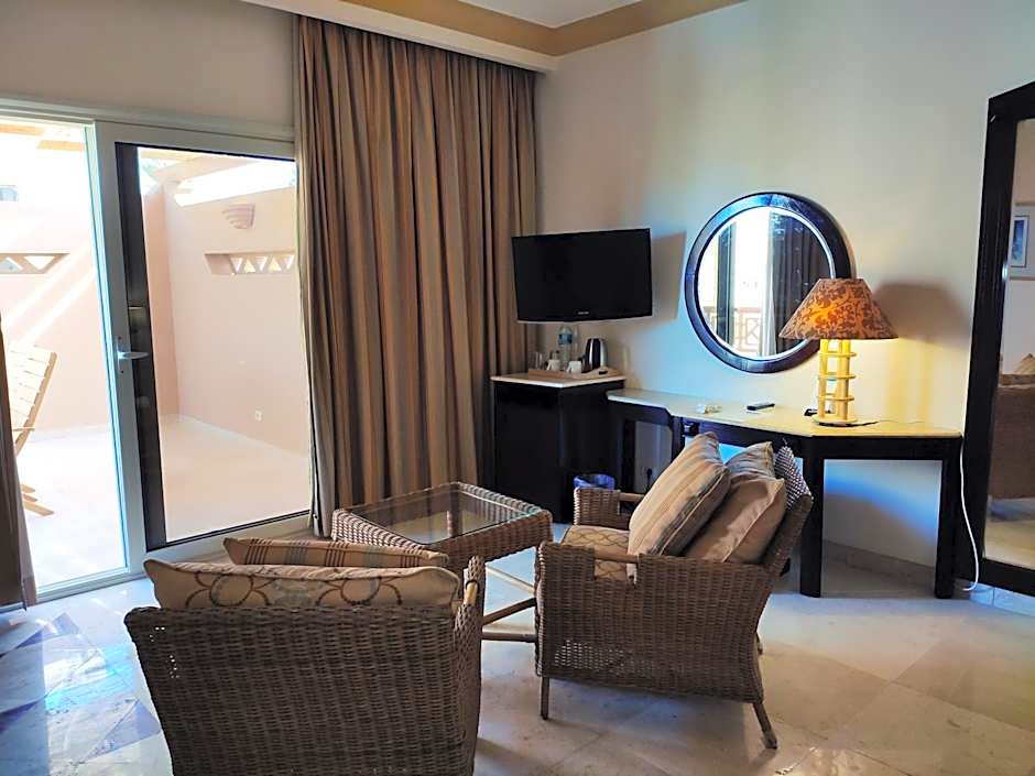 Spacious large room 52 sqm. with twin bed /king size bed and convertible couch for kids with partial sea view, overlooking the gardens and pool, with Arabic mashrabeya windo All rooms are very spacious with comfortable furnishing, sofa bed, air conditioning, electronic door locks and smoke detector, satellite TV, international direct dial telephone, mini-bar, in room safe, hairdryer, bathtub, tea and coffee making facilities.